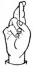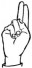 На ћирилици написано РУМЕНА МИЦХАУД састоји се из 13 слова [?]. Исписано ћириличном једноручном азбуком за глувонеме: